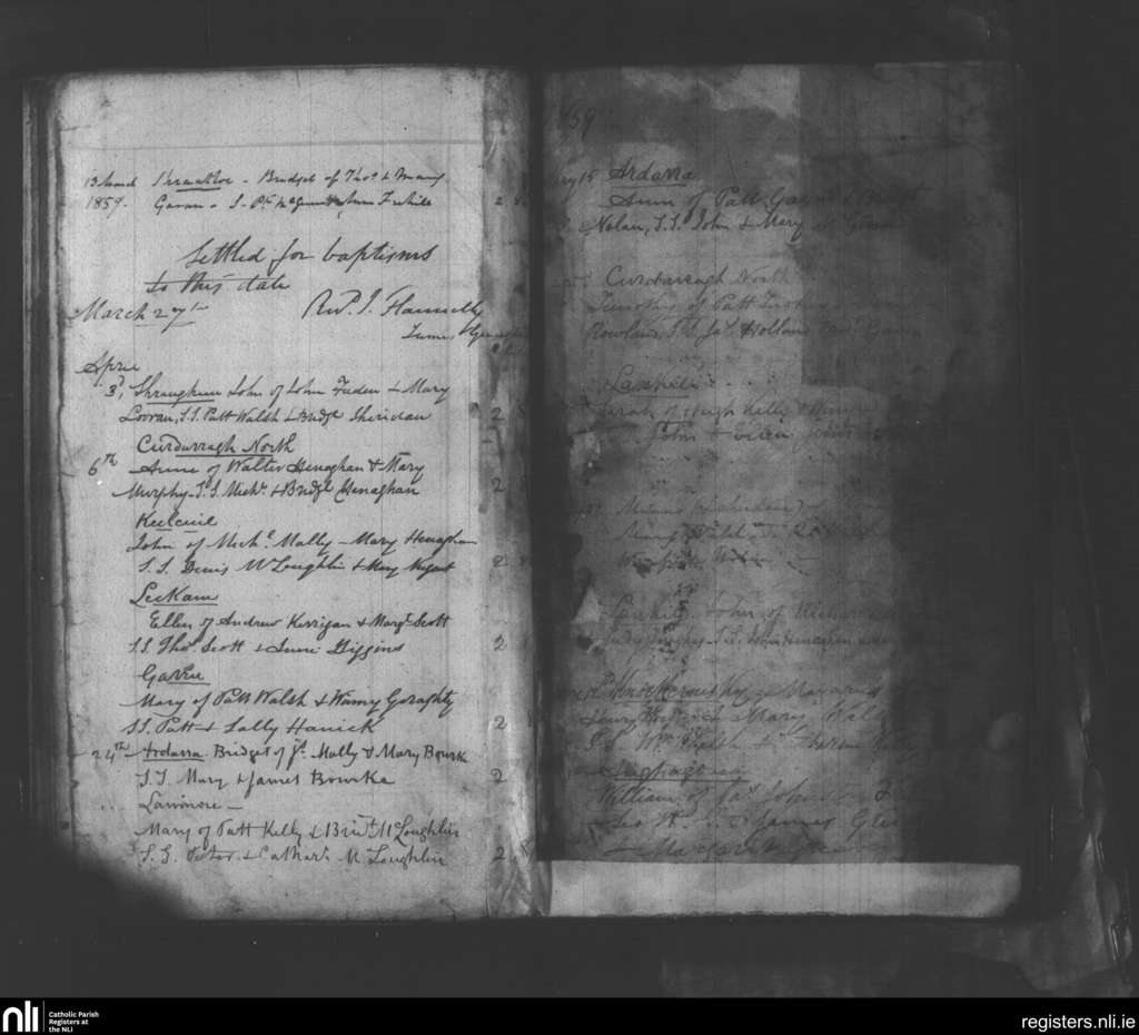 Aughagower; County of Mayo; Archdiocese of Tuam. Baptisms, Mar. 1859 to June 1859