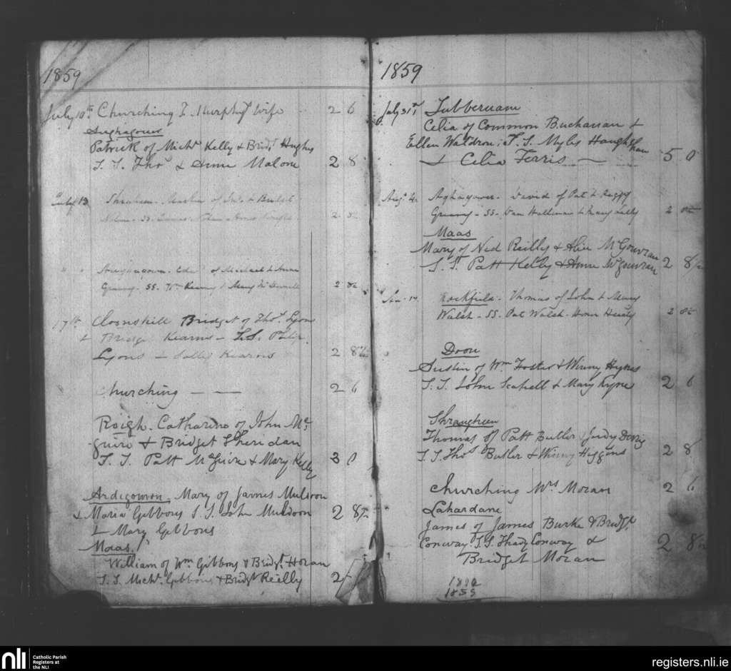 Aughagower; County of Mayo; Archdiocese of Tuam. Baptisms, July 1859 to Aug. 1859
