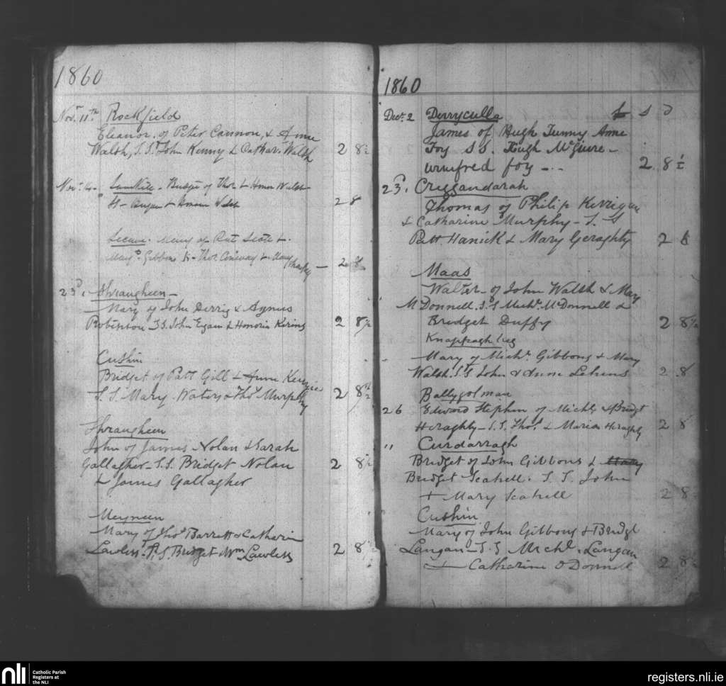 Aughagower; County of Mayo; Archdiocese of Tuam. Baptisms, Nov. 1860 to Dec. 1860