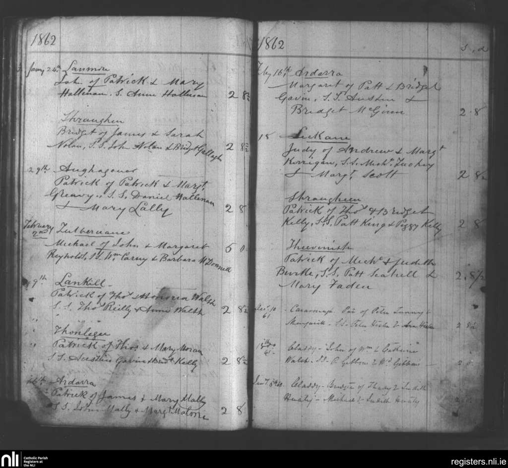 Aughagower; County of Mayo; Archdiocese of Tuam. Baptisms, Dec. 1861 to Feb. 1862