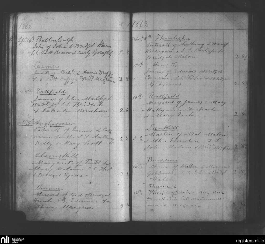 Aughagower; County of Mayo; Archdiocese of Tuam. Baptisms, Sep. 1862 to Nov. 1862