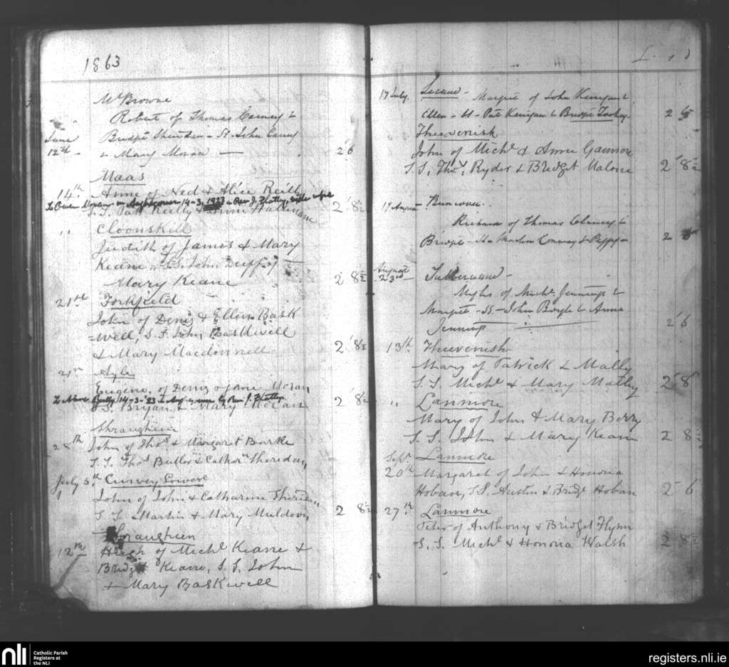 Aughagower; County of Mayo; Archdiocese of Tuam. Baptisms, Marriages, June 1863 to Mar. 1923