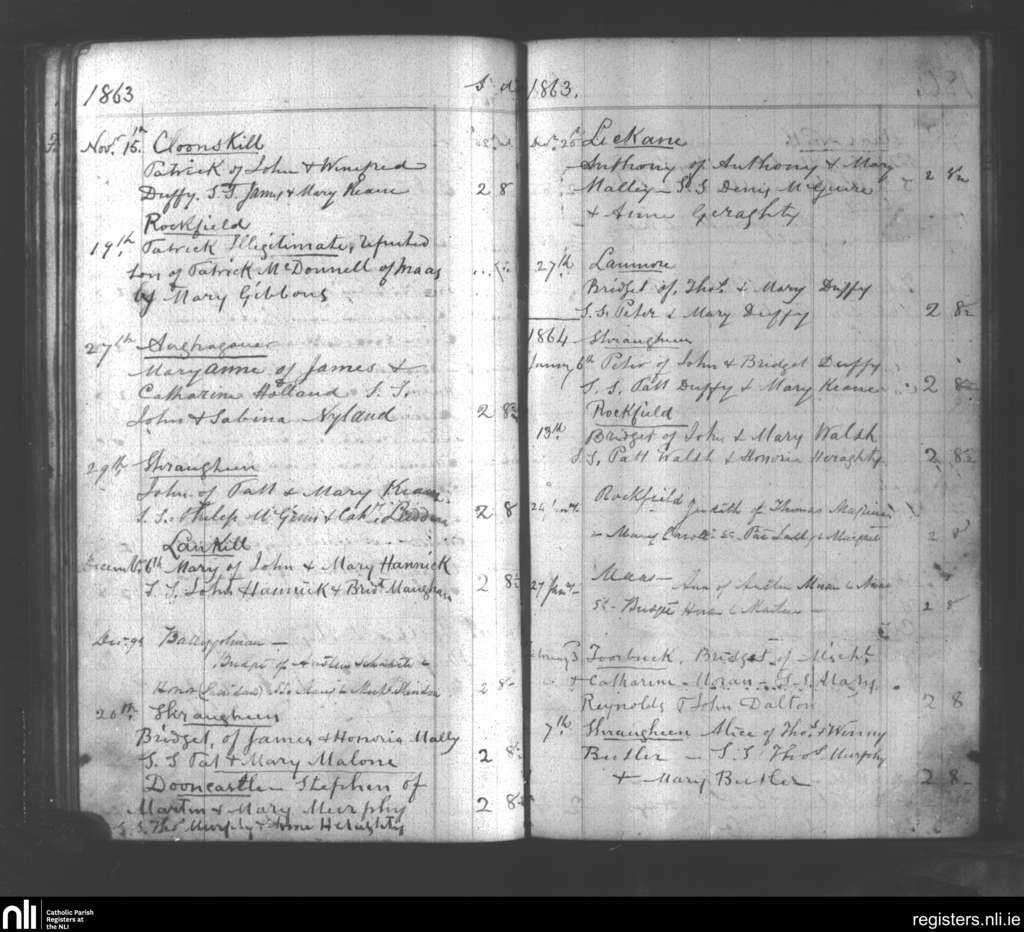 Aughagower; County of Mayo; Archdiocese of Tuam. Baptisms, Nov. 1863 to Feb. 1864