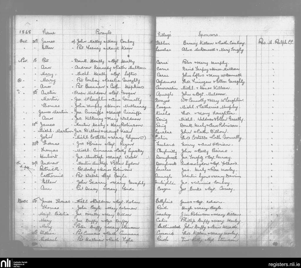 Aghamore; County of Mayo; Archdiocese of Tuam. Baptisms, Oct. 1868 to Dec. 1868