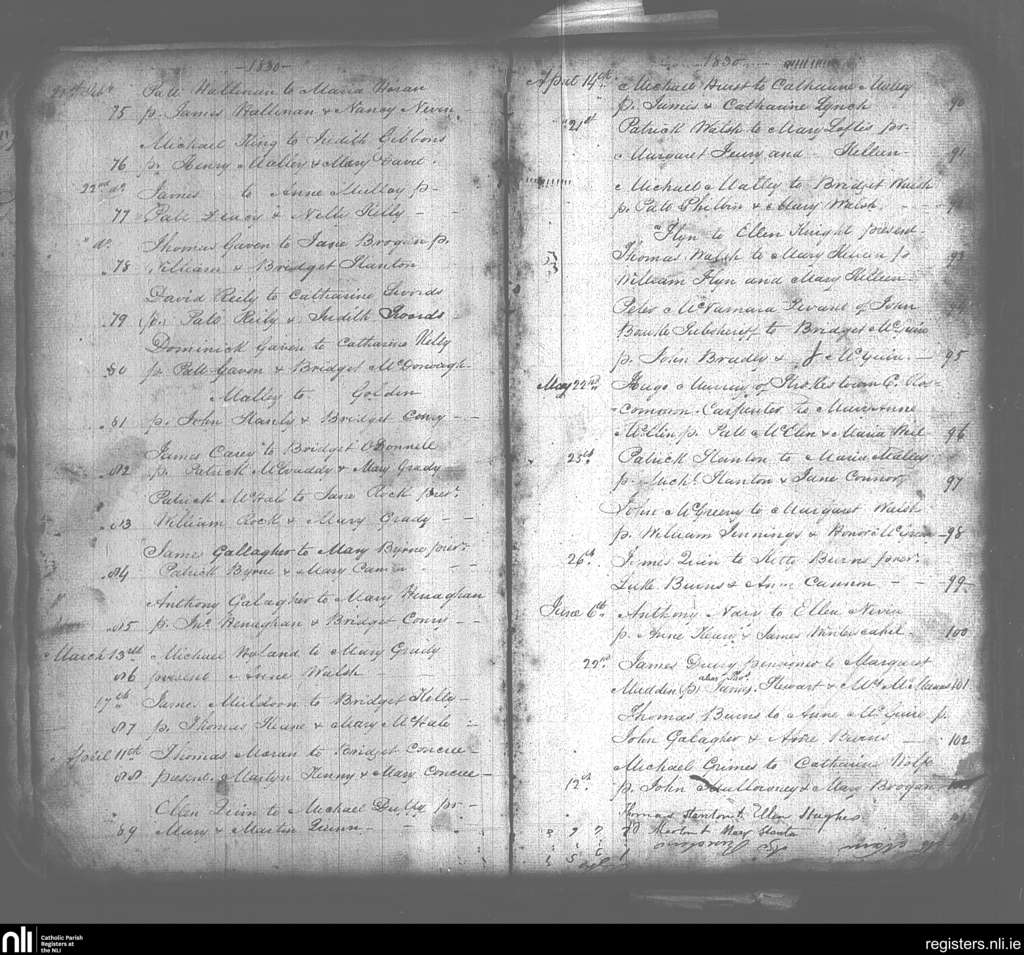Castlebar; County of Mayo; Archdiocese of Tuam. Marriages, Feb. 1830 to June 1830