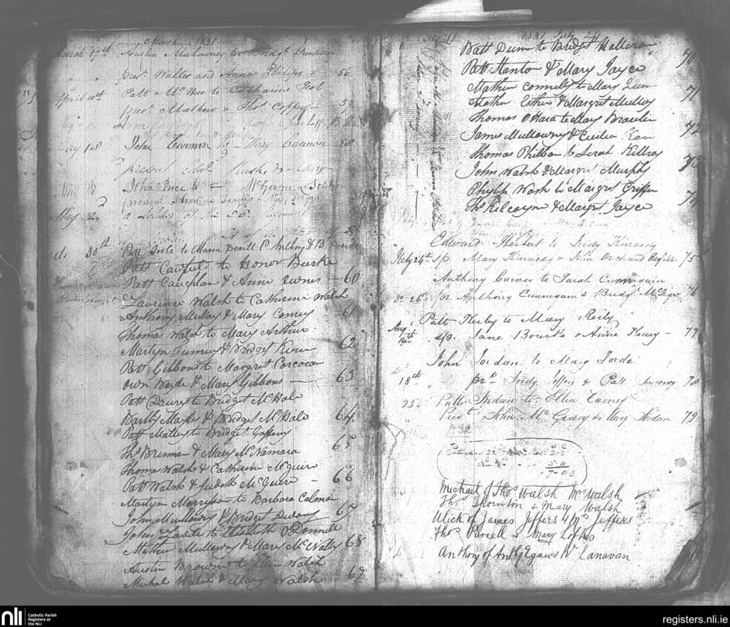 Castlebar; County of Mayo; Archdiocese of Tuam. Marriages, Baptisms, Mar. 1831 to Aug. 1831