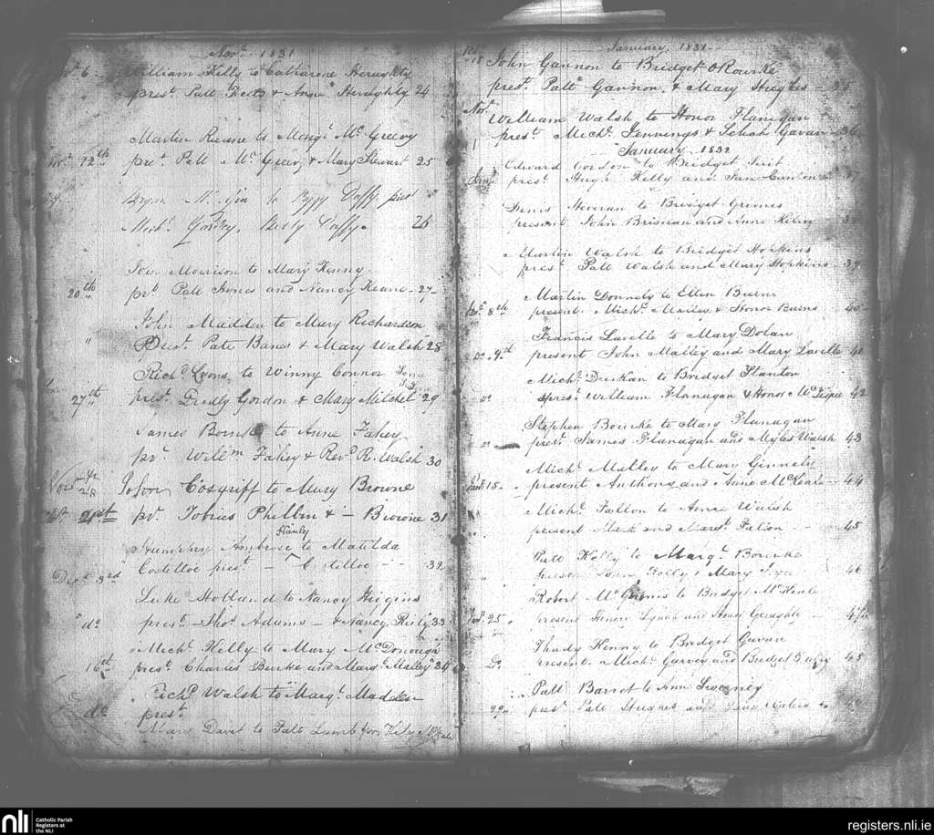 Castlebar; County of Mayo; Archdiocese of Tuam. Marriages, Jan. 1831 to Jan. 1832