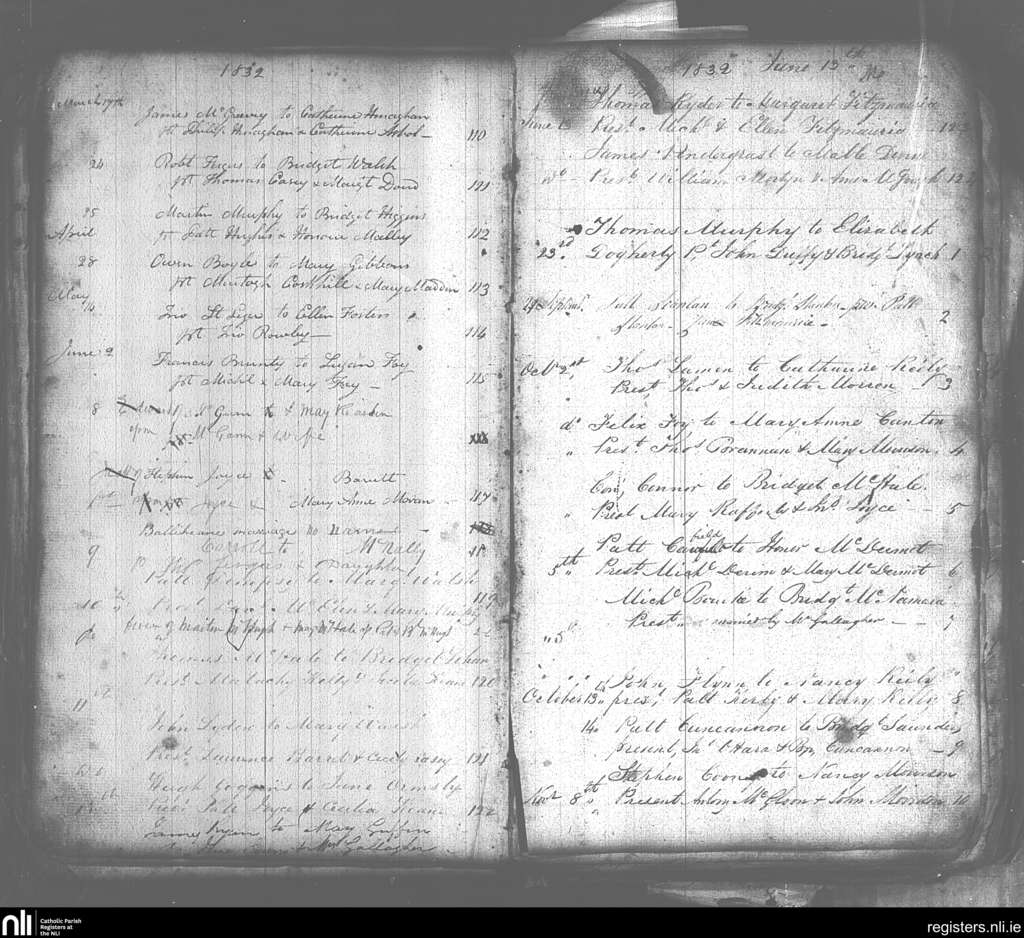 Castlebar; County of Mayo; Archdiocese of Tuam. Marriages, Mar. 1832 to Nov. 1832