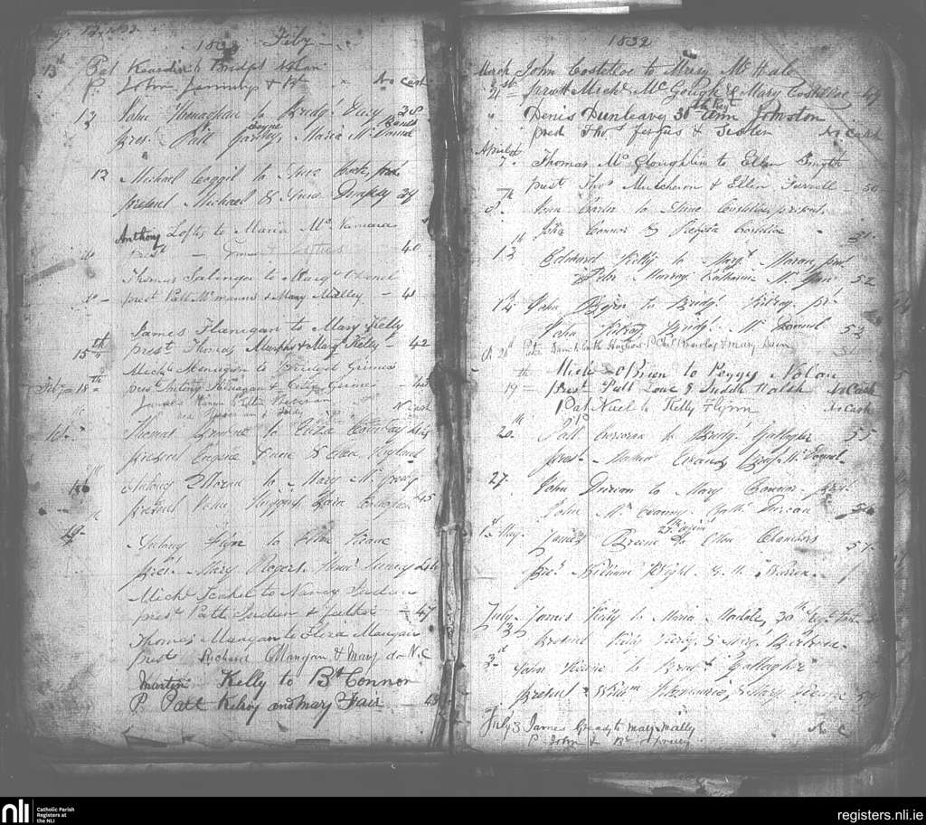 Castlebar; County of Mayo; Archdiocese of Tuam. Marriages, Feb. 1832 to July 1832