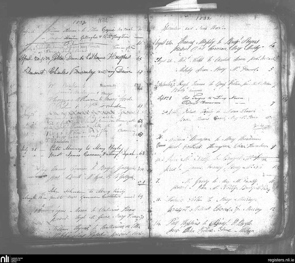 Castlebar; County of Mayo; Archdiocese of Tuam. Marriages, Baptisms, July 1832 to Apr. 1833