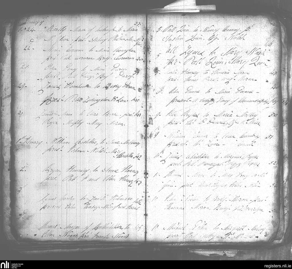Castlebar; County of Mayo; Archdiocese of Tuam. Marriages, Jan. 1834 to Feb. 1834