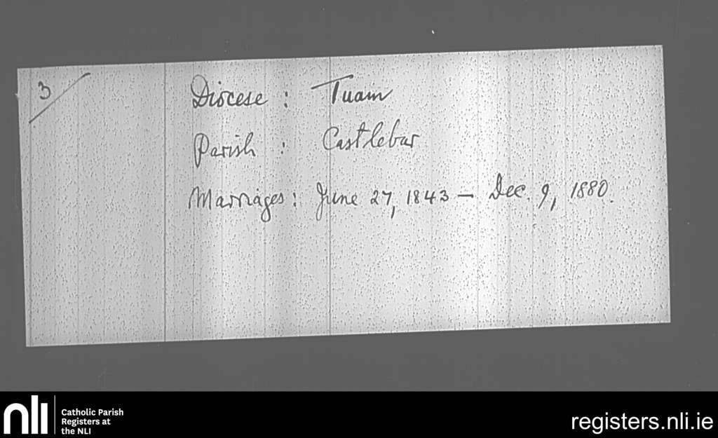 Castlebar; Contae Mayo; Ard-Deoise Tuam. Marriages