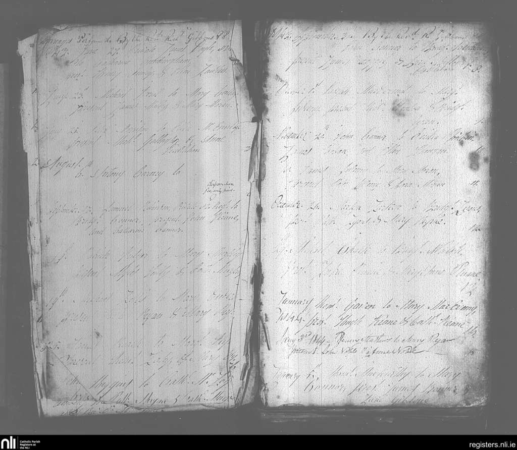 Castlebar; County of Mayo; Archdiocese of Tuam. Marriages, June 1843 to Jan. 1844