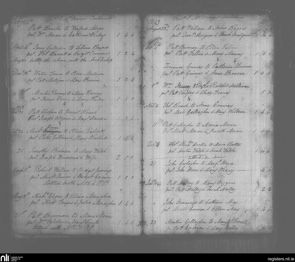 Castlebar; County of Mayo; Archdiocese of Tuam. Marriages, Feb. 1842 to Jan. 1844