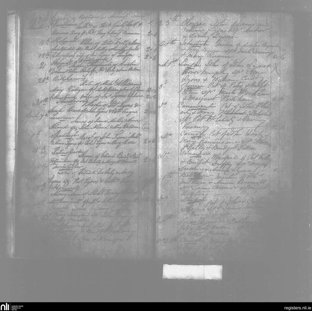 Annagh; County of Mayo; Archdiocese of Tuam. Baptisms, Mar. 1872 to Apr. 1872