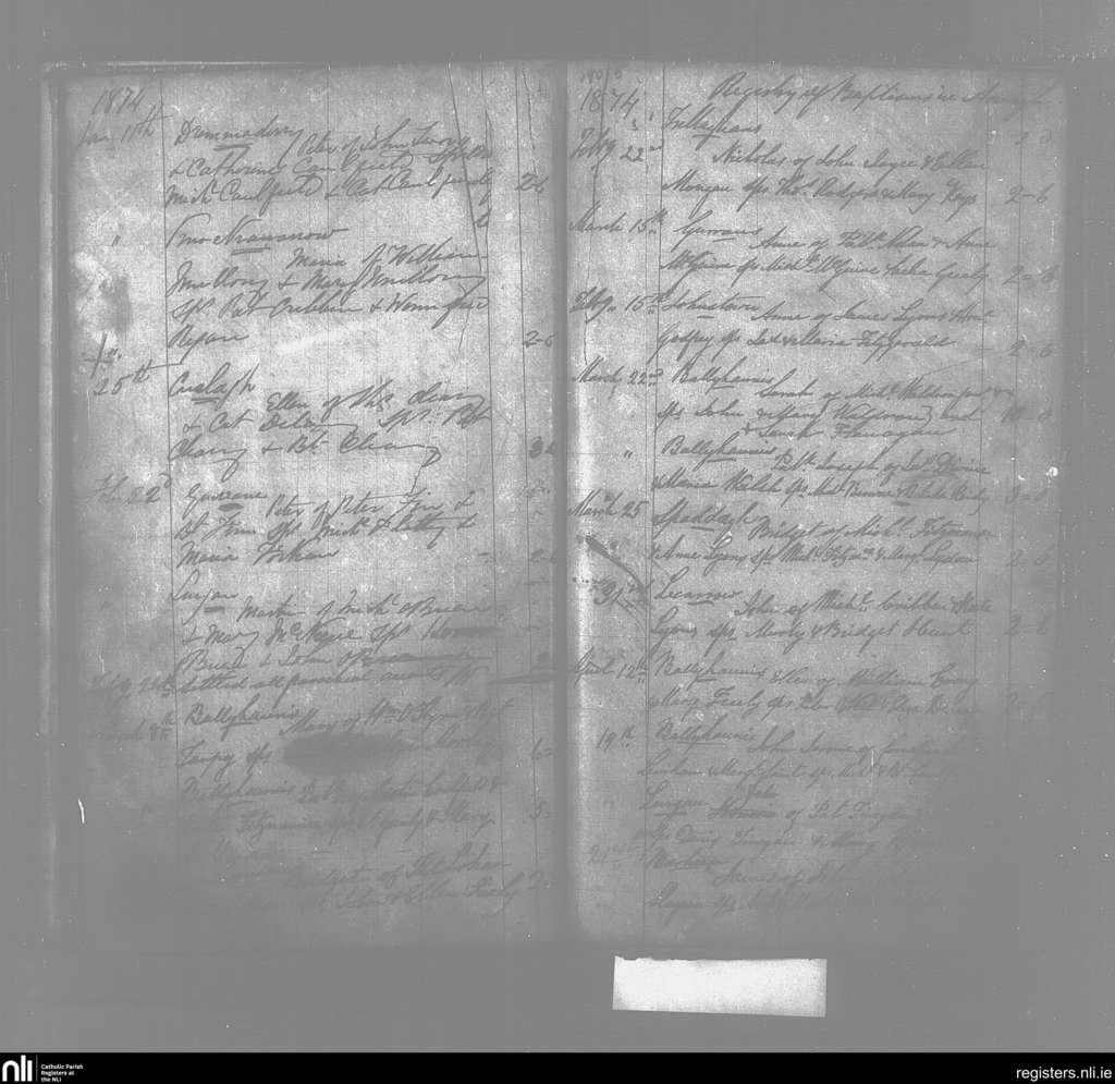 Annagh; County of Mayo; Archdiocese of Tuam. Baptisms, Jan. 1874 to Apr. 1874