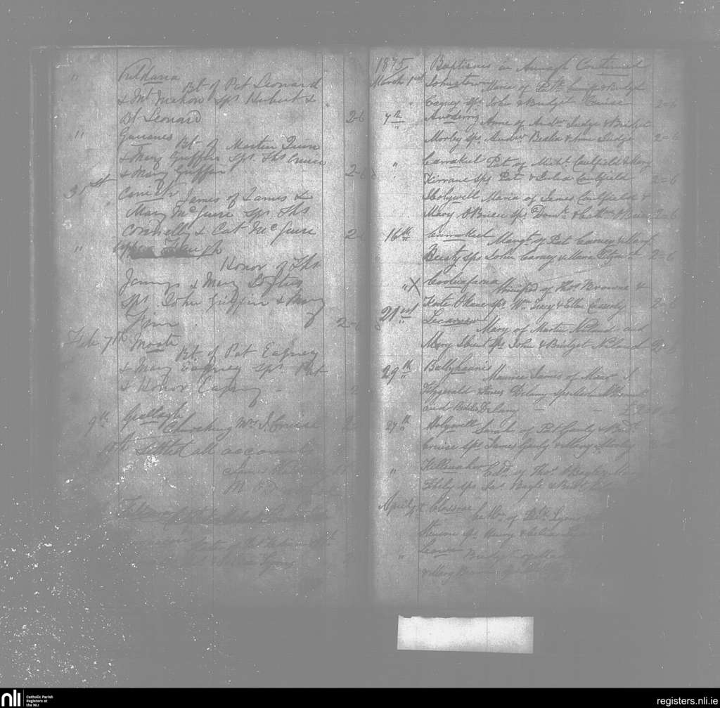 Annagh; County of Mayo; Archdiocese of Tuam. Baptisms, Jan. 1875 to Apr. 1875