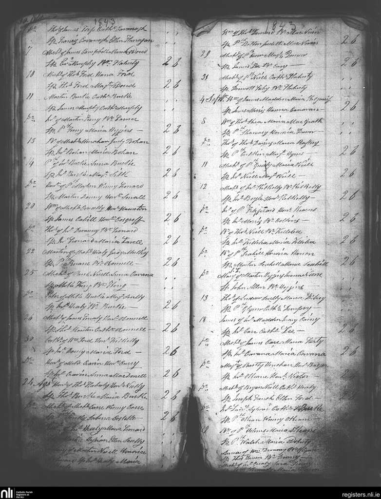 Annaghdown; County of Galway; Archdiocese of Tuam. Baptisms, July 1843 to Sep. 1843
