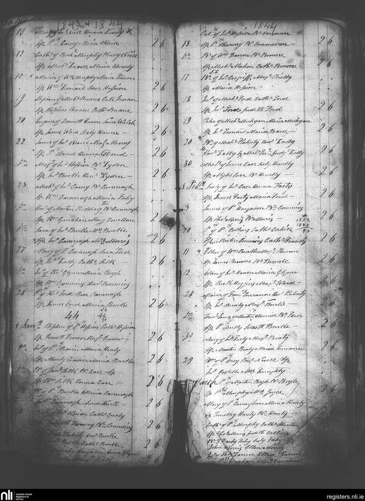 Annaghdown; County of Galway; Archdiocese of Tuam. Baptisms, Dec. 1843 to Mar. 1844