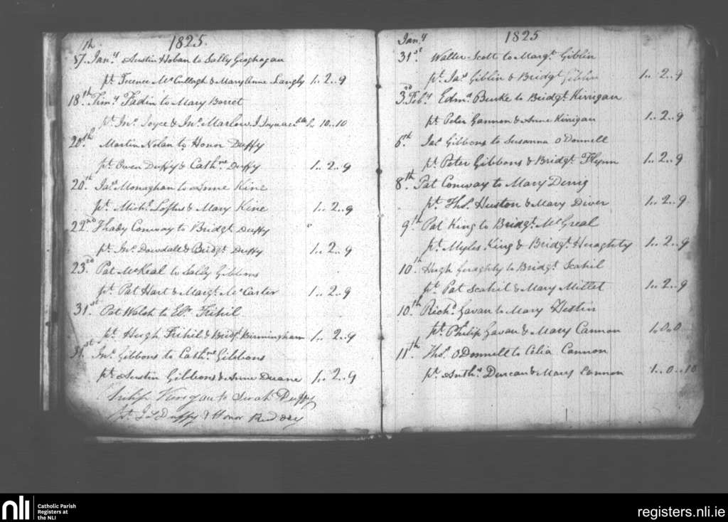 Aughaval; County of Mayo; Archdiocese of Tuam. Marriages, Jan. 1825 to Feb. 1825
