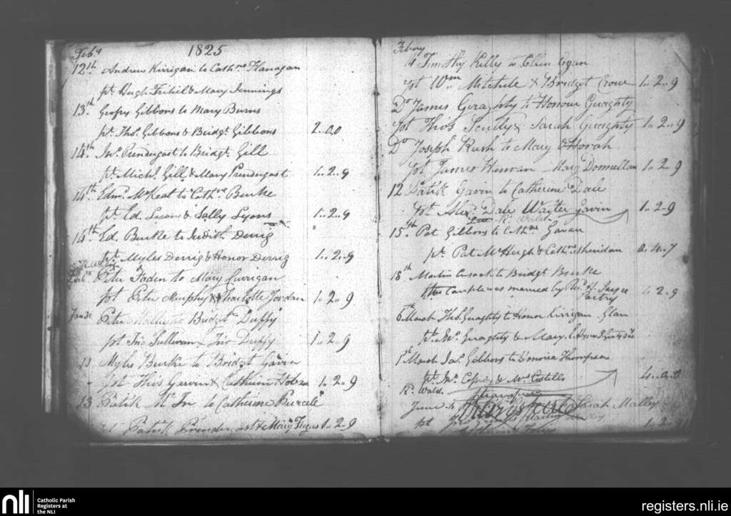 Aughaval; County of Mayo; Archdiocese of Tuam. Marriages, Jan. 1825 to Mar. 1825