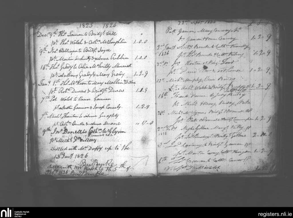 Aughaval; County of Mayo; Archdiocese of Tuam. Marriages, Nov. 1825 to Feb. 1826