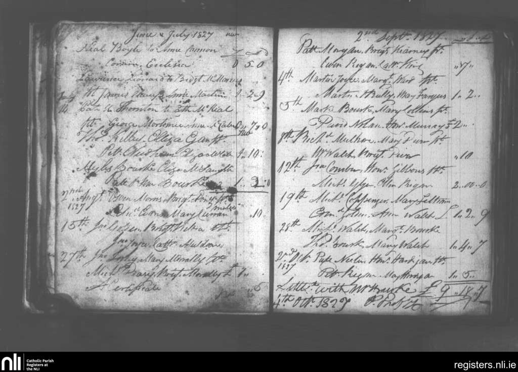 Aughaval; County of Mayo; Archdiocese of Tuam. Marriages, June 1827 to Oct. 1827
