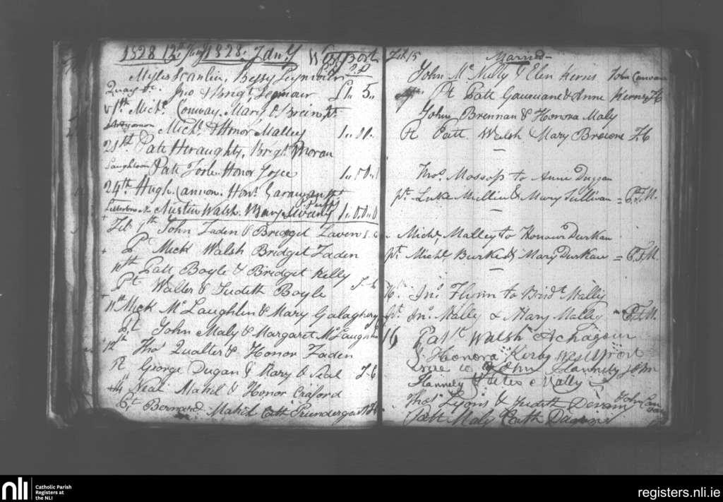 Aughaval; County of Mayo; Archdiocese of Tuam. Marriages, Jan. 1828 to Feb. 1828