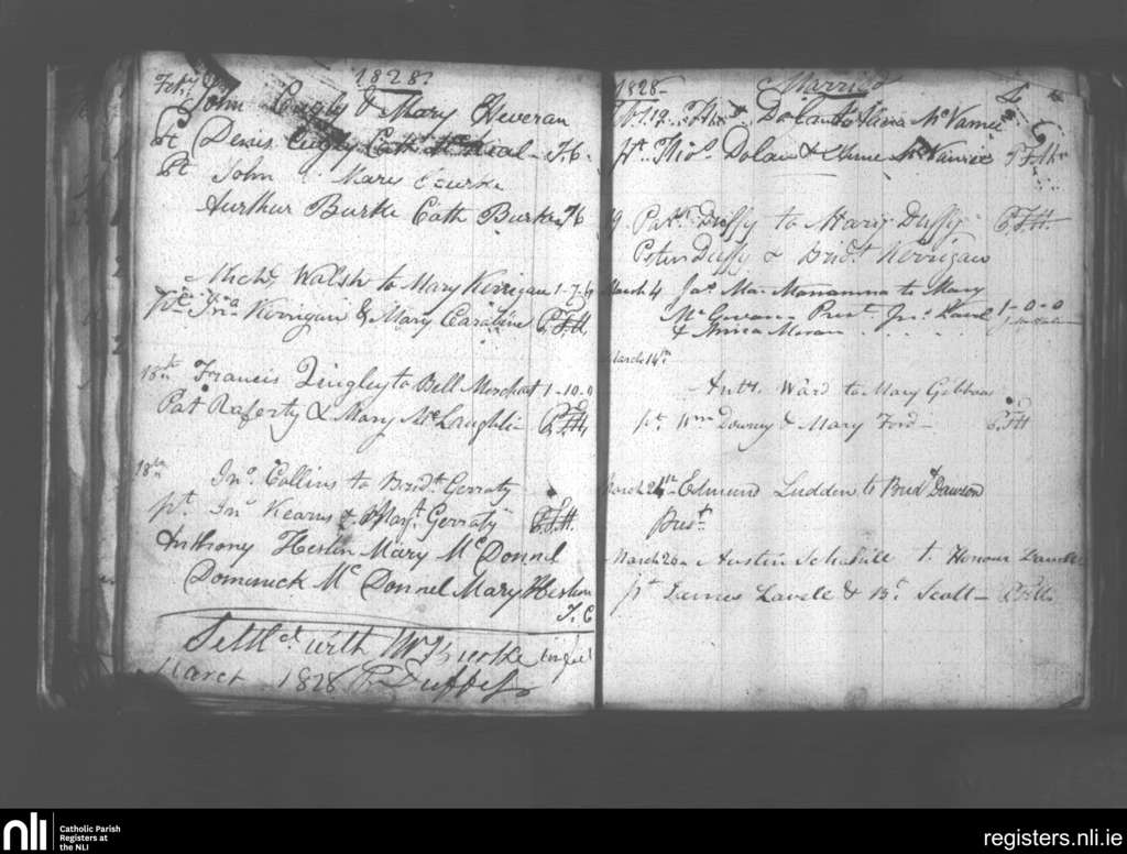 Aughaval; County of Mayo; Archdiocese of Tuam. Marriages, Feb. 1828 to Mar. 1828