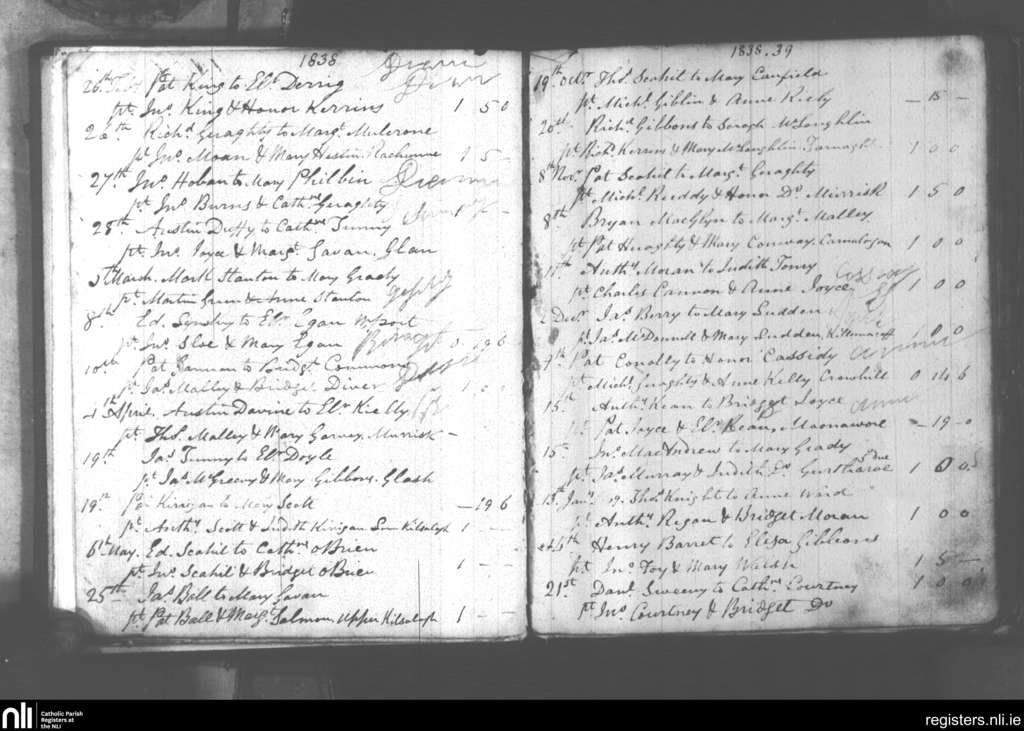 Aughaval; County of Mayo; Archdiocese of Tuam. Marriages, Feb. 1838 to Jan. 1839