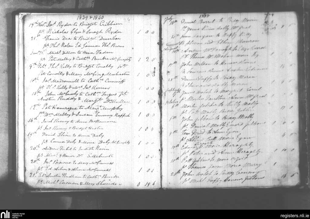 Aughaval; County of Mayo; Archdiocese of Tuam. Marriages, July 1838 to Feb. 1840