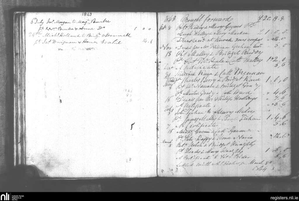 Aughaval; County of Mayo; Archdiocese of Tuam. Marriages, July 1843 to Mar. 1844