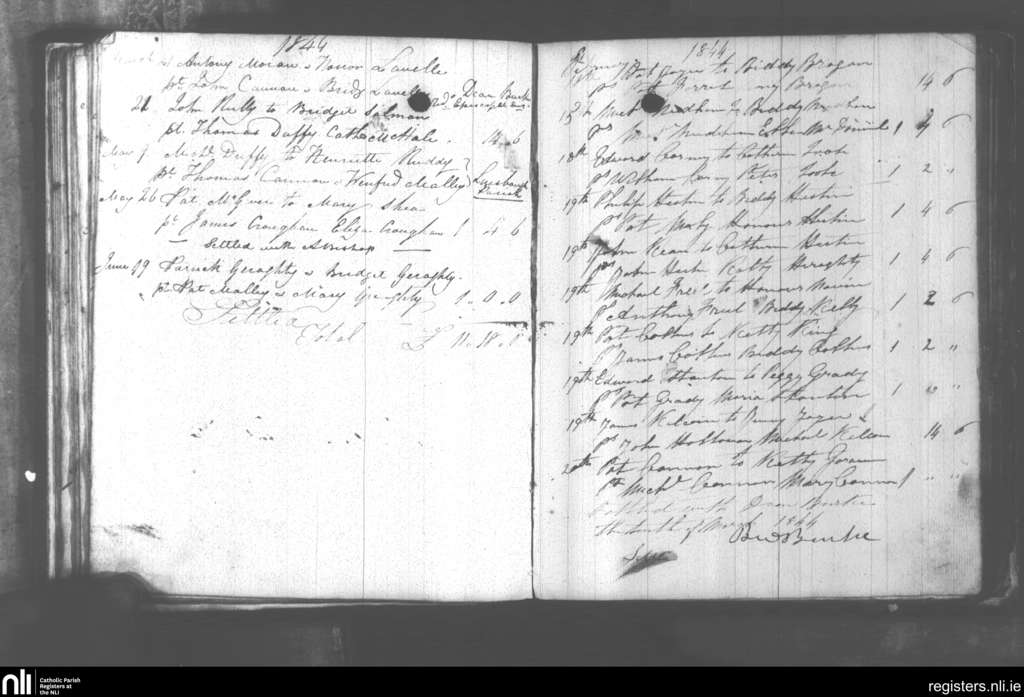 Aughaval; County of Mayo; Archdiocese of Tuam. Marriages, Jan. 1844 to June 1844