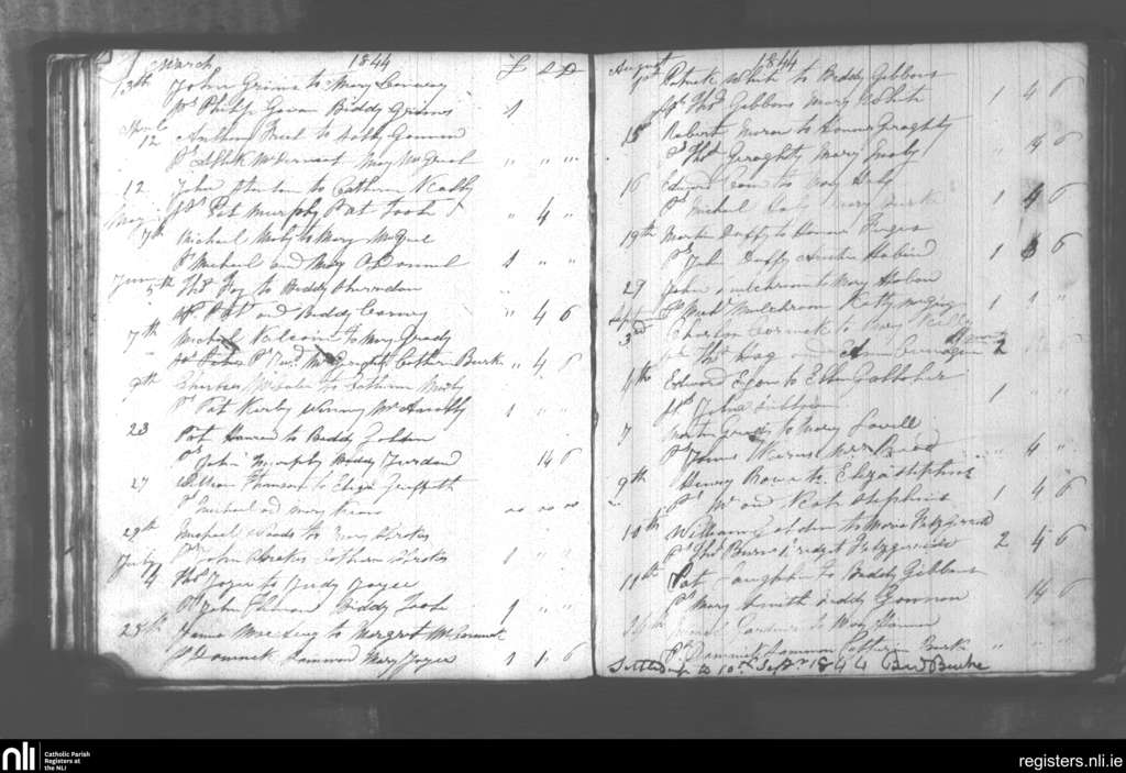 Aughaval; County of Mayo; Archdiocese of Tuam. Marriages, Mar. 1844 to Sep. 1844