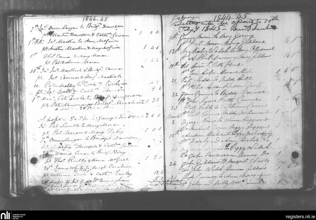 Aughaval; County of Mayo; Archdiocese of Tuam. Marriages, Jan. 1844 to Mar. 1845