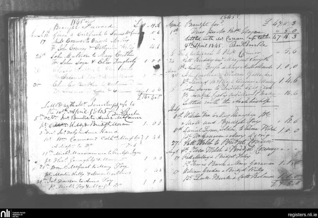 Aughaval; County of Mayo; Archdiocese of Tuam. Marriages, Mar. 1845 to Aug. 1845