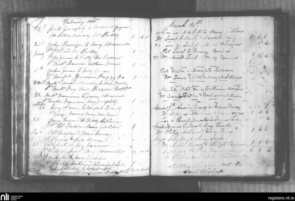 Aughaval; County of Mayo; Archdiocese of Tuam. Marriages, Feb. 1846 to May 1846