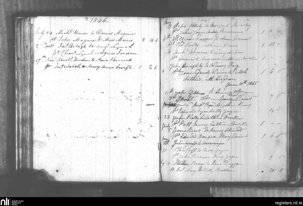 Aughaval; County of Mayo; Archdiocese of Tuam. Marriages, May 1846 to Nov. 1846