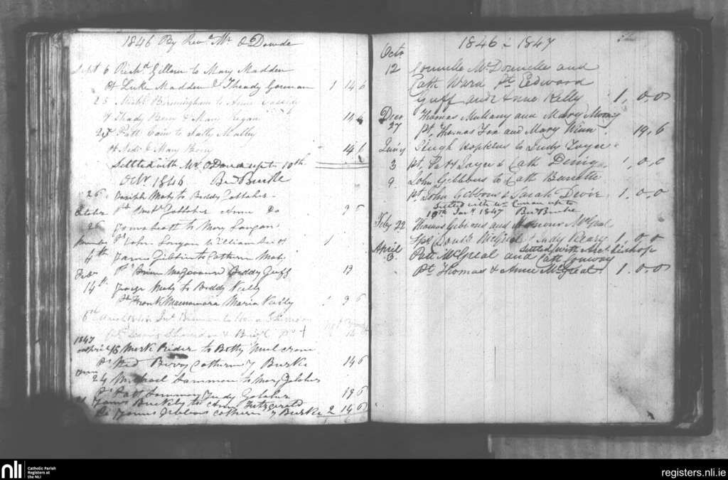 Aughaval; County of Mayo; Archdiocese of Tuam. Marriages, Sep. 1846 to June 1847
