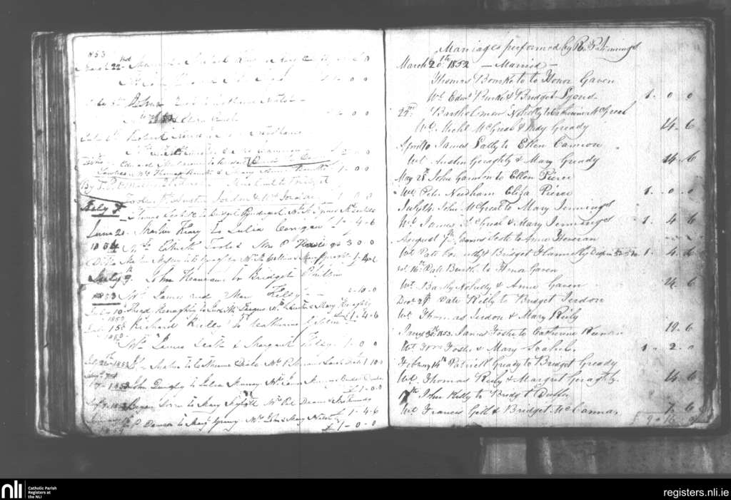 Aughaval; County of Mayo; Archdiocese of Tuam. Marriages, Mar. 1852 to Jan. 1854