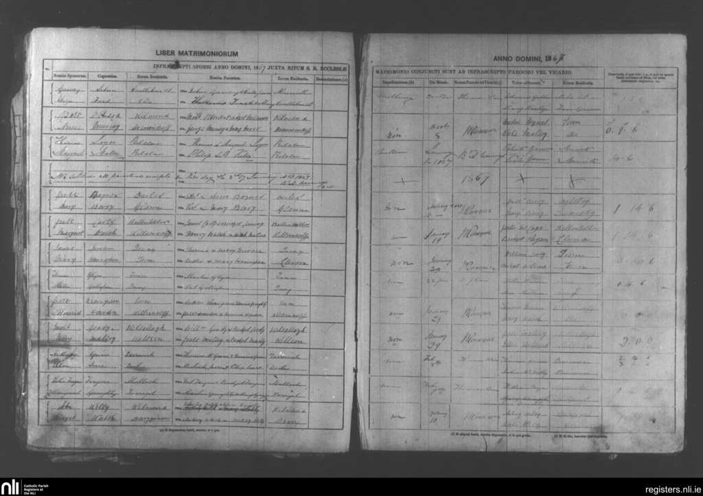 Aughaval; County of Mayo; Archdiocese of Tuam. Marriages, Nov. 1866 to Feb. 1867