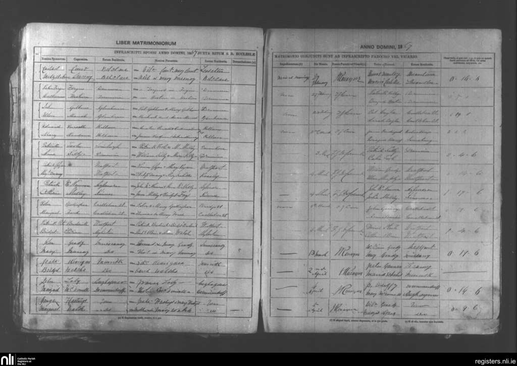 Aughaval; County of Mayo; Archdiocese of Tuam. Marriages, Feb. 1867 to Apr. 1867