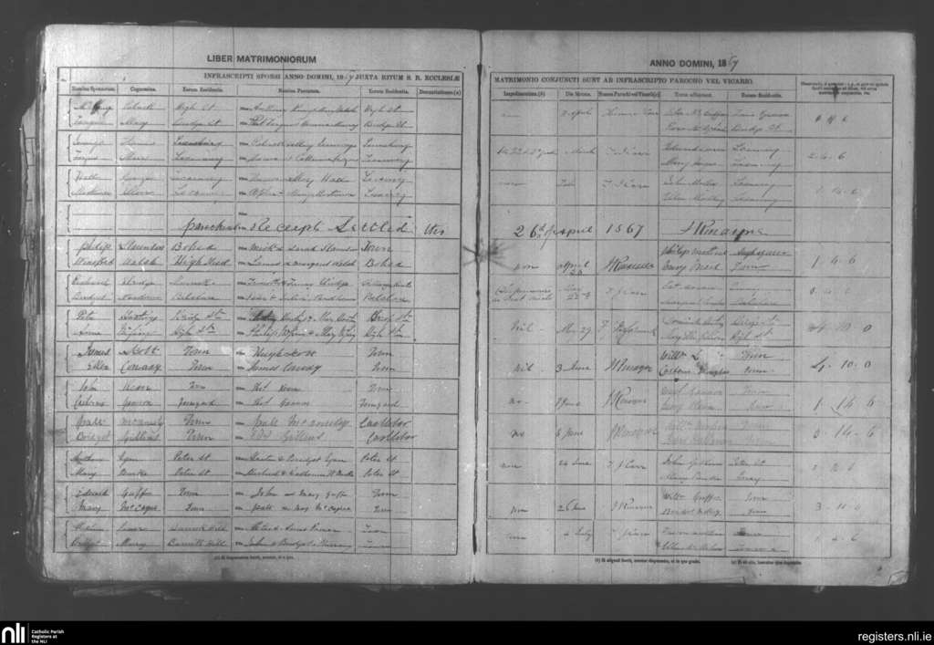 Aughaval; County of Mayo; Archdiocese of Tuam. Marriages, Feb. 1867 to July 1867