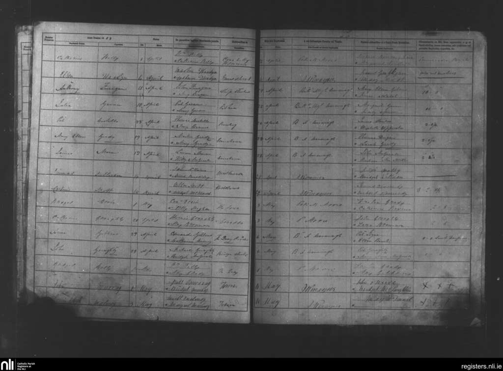 Aughaval; County of Mayo; Archdiocese of Tuam. Baptisms, Mar. 1862 to Apr. 1862