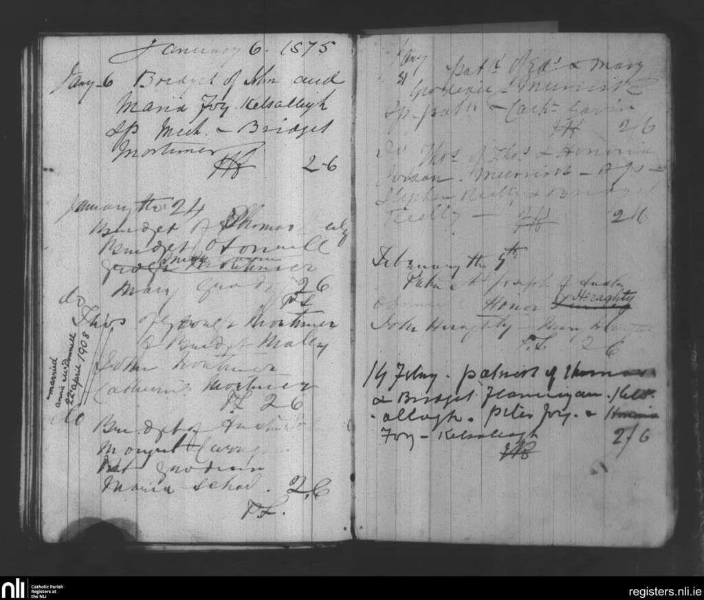 Aughaval; County of Mayo; Archdiocese of Tuam. Baptisms, Jan. 1875 to Feb. 1875