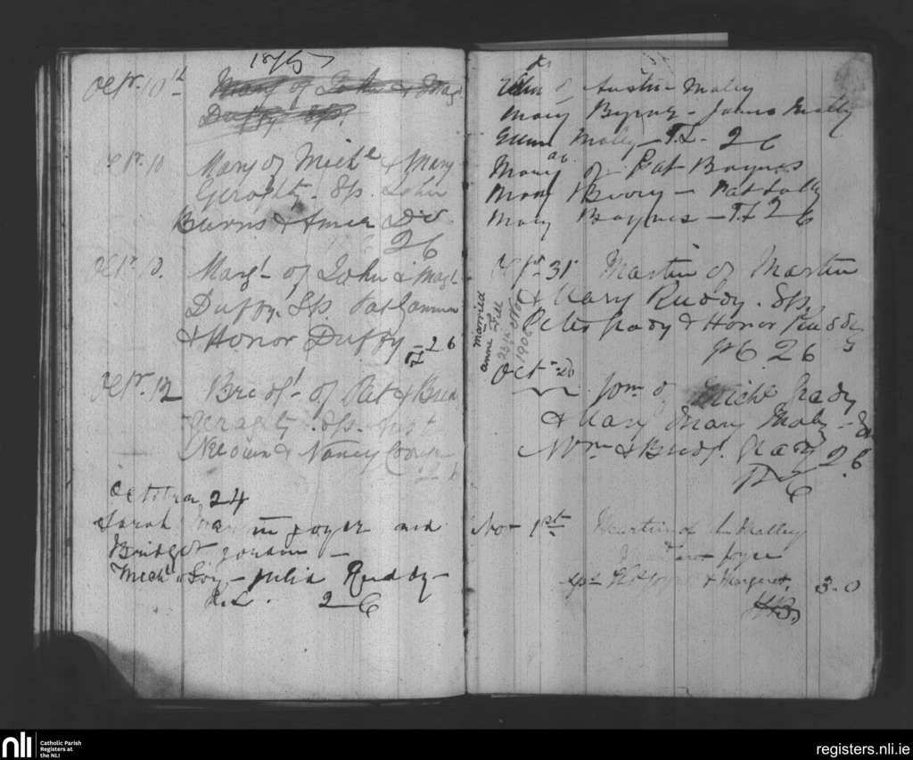 Aughaval; County of Mayo; Archdiocese of Tuam. Baptisms, Oct. 1875 to Nov. 1875