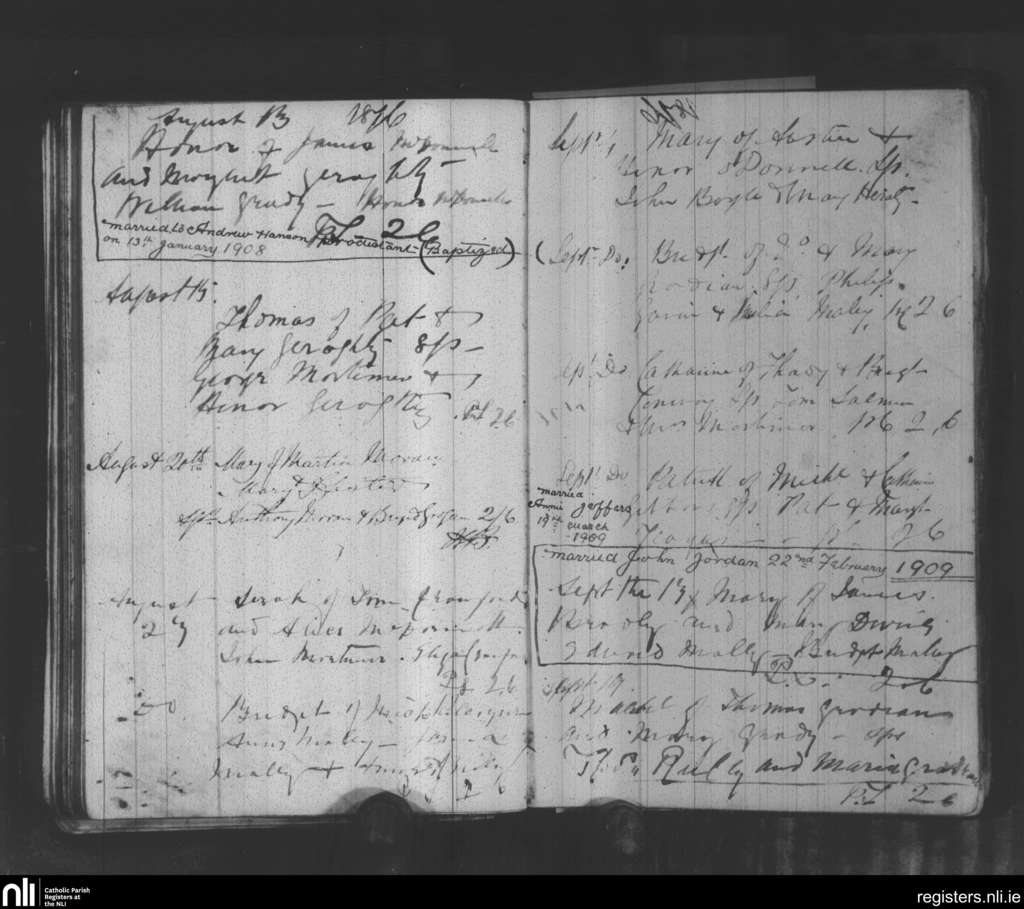 Aughaval; County of Mayo; Archdiocese of Tuam. Baptisms, Marriages, Aug. 1876 to Mar. 1909
