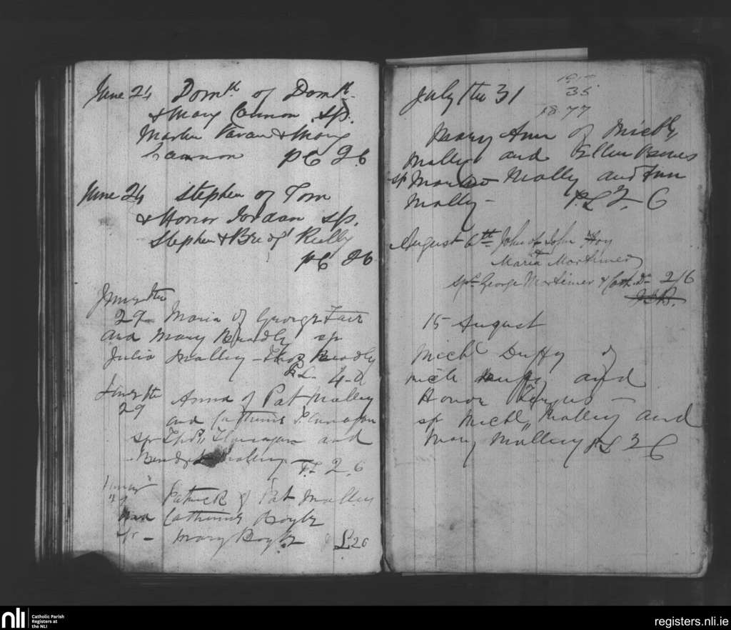 Aughaval; County of Mayo; Archdiocese of Tuam. Baptisms, June 1877 to Aug. 1877