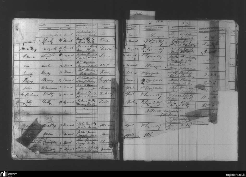 Aughaval; County of Mayo; Archdiocese of Tuam. Baptisms, Mar. 1874 to Apr. 1874