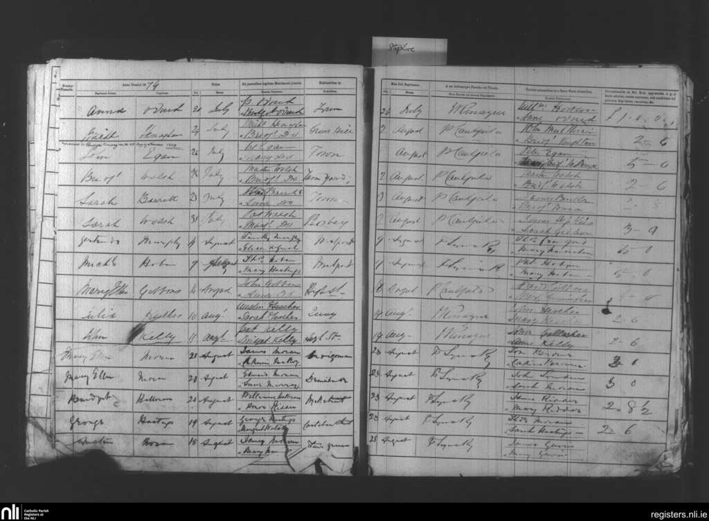 Aughaval; County of Mayo; Archdiocese of Tuam. Baptisms, July 1874 to Aug. 1874